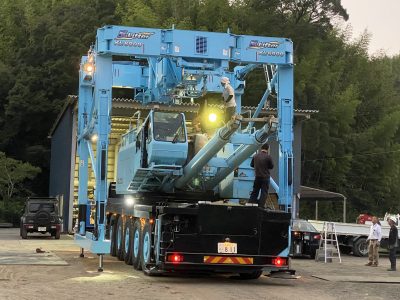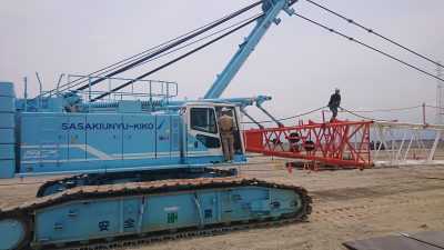 今日愛媛県にて120tクローラークレーン組立ています